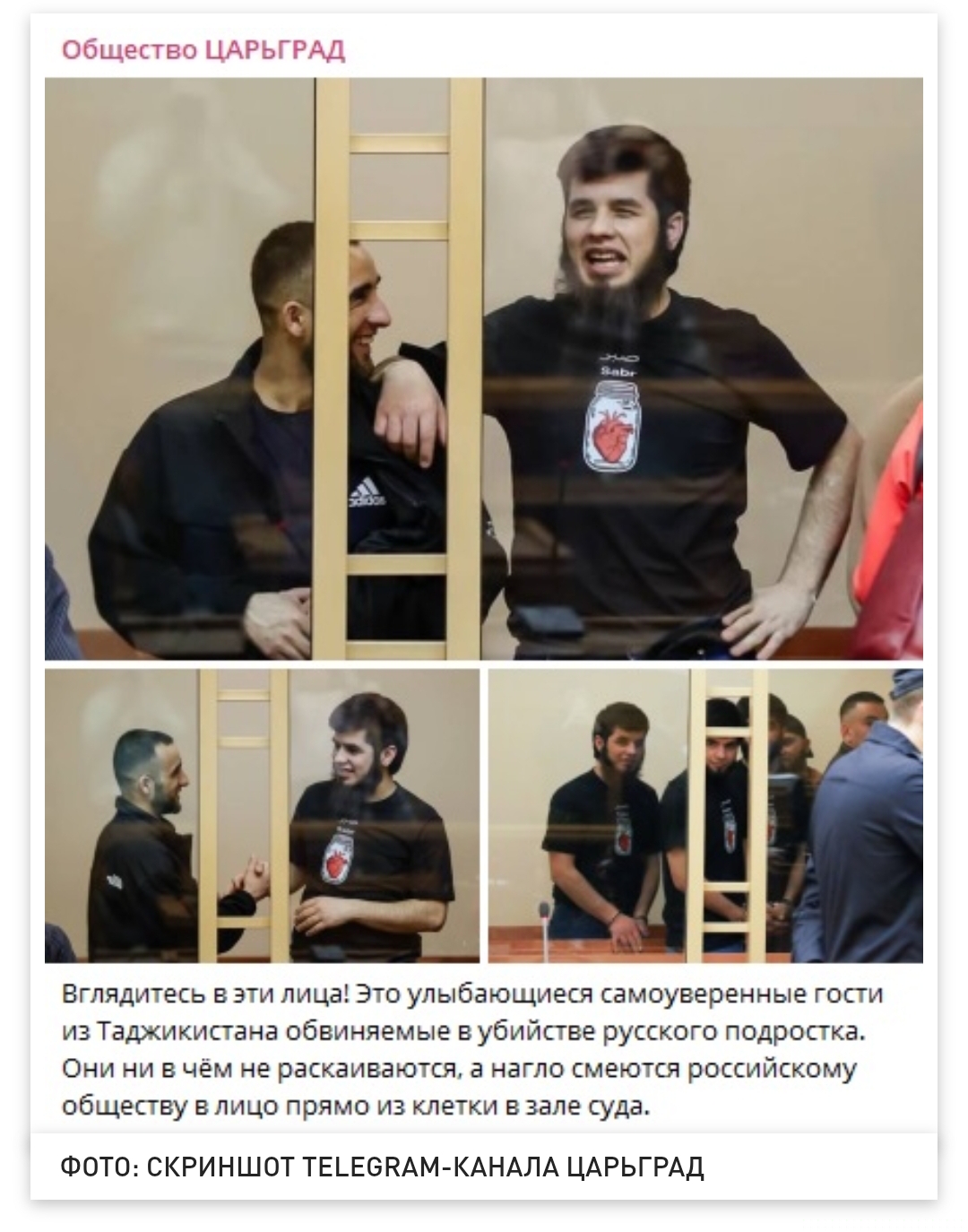 Скрин и цитата уже годовалой давности. На них таджики жестоко убившие Русского школьника.